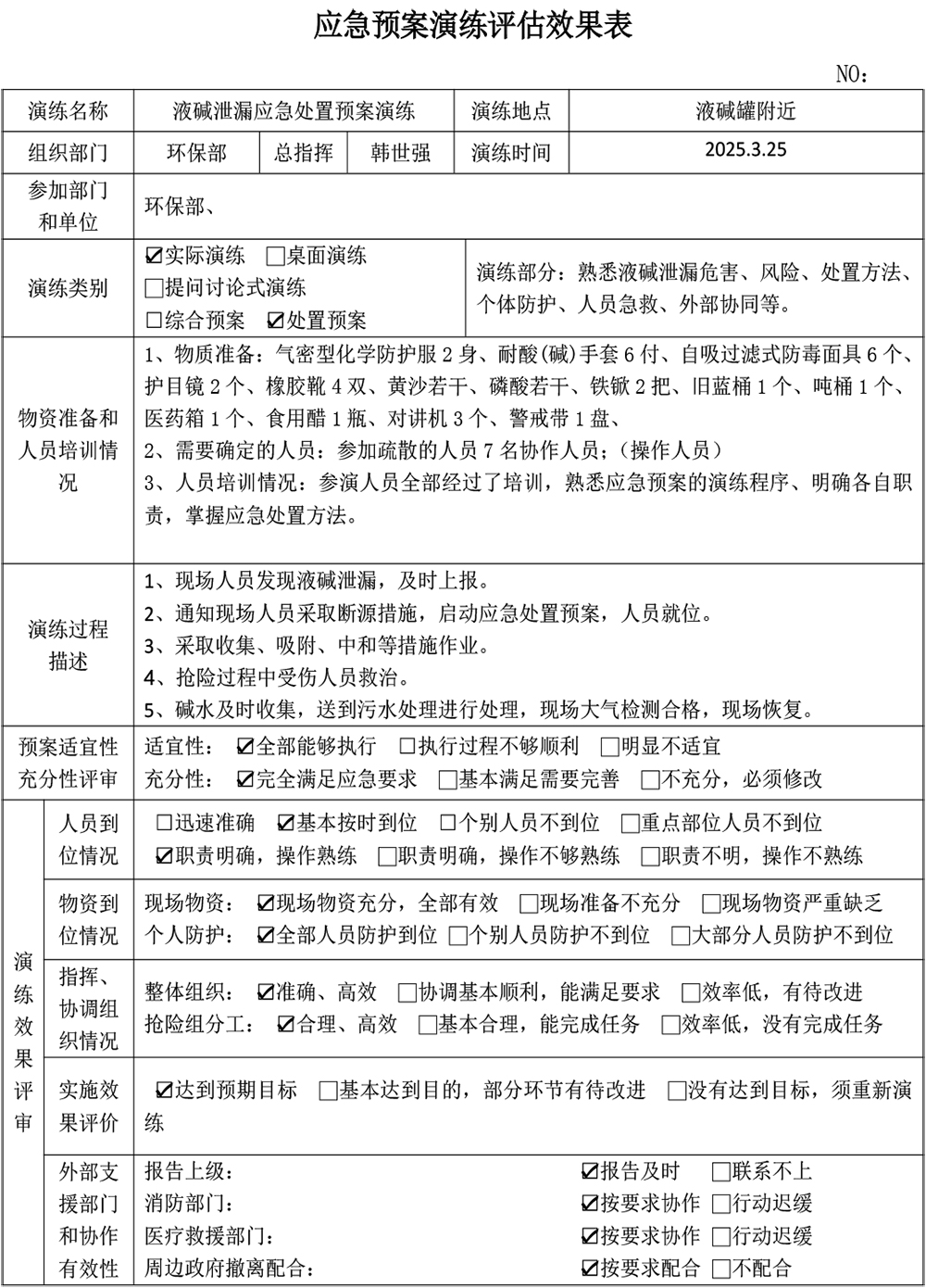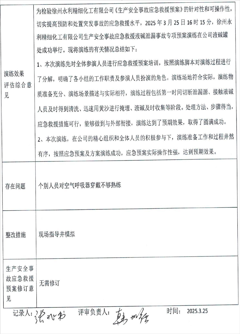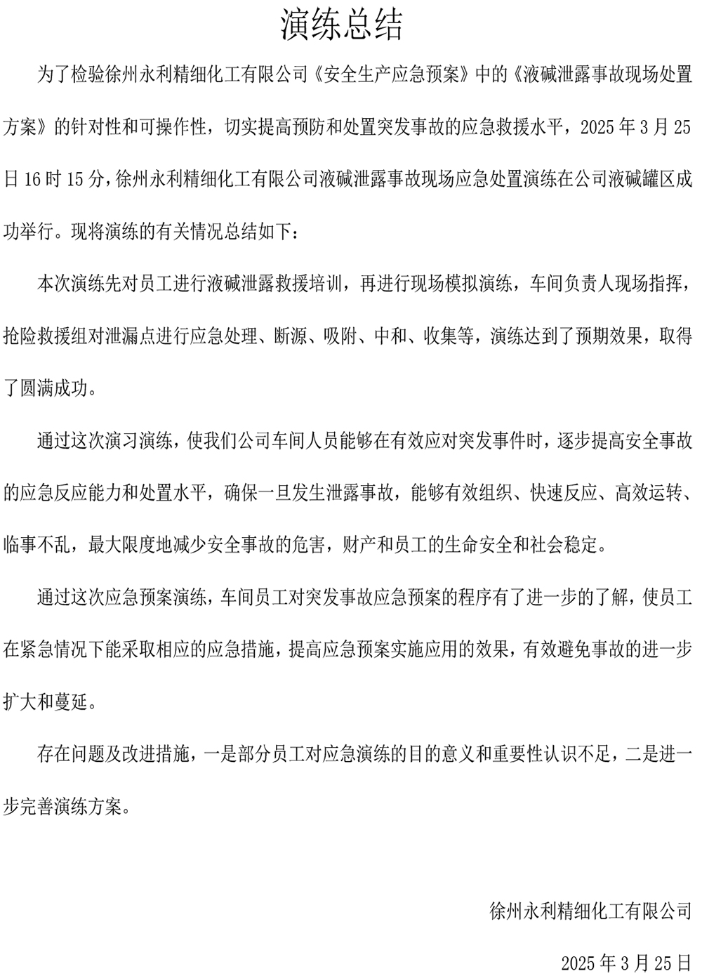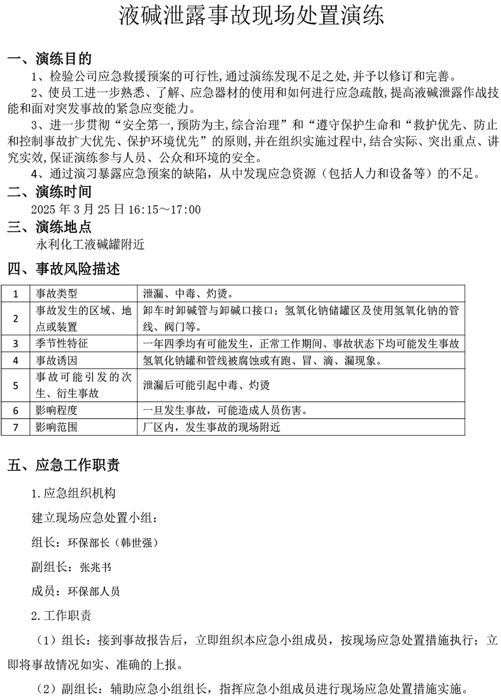 2025.3液碱泄漏事故现场处置演练、总结、评估